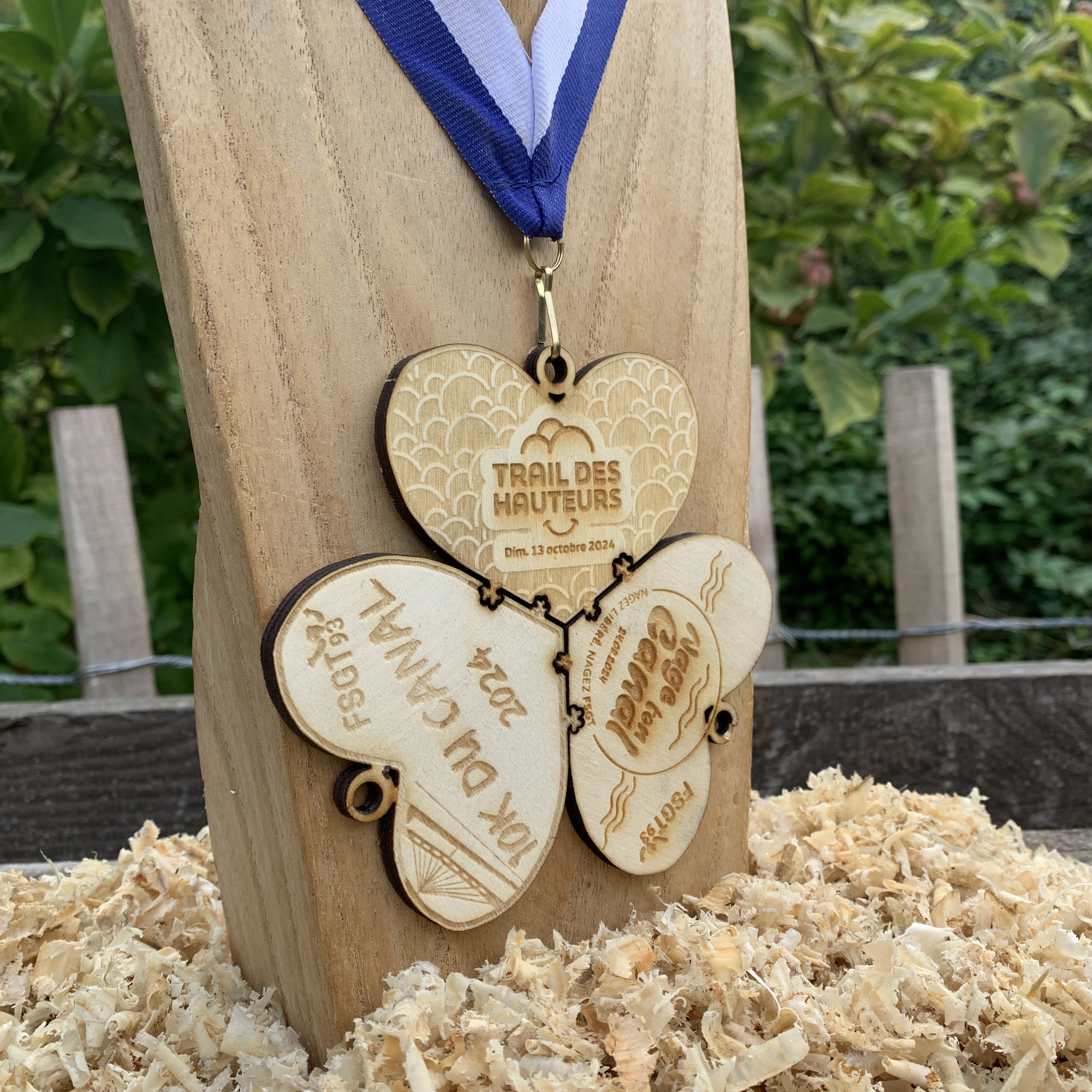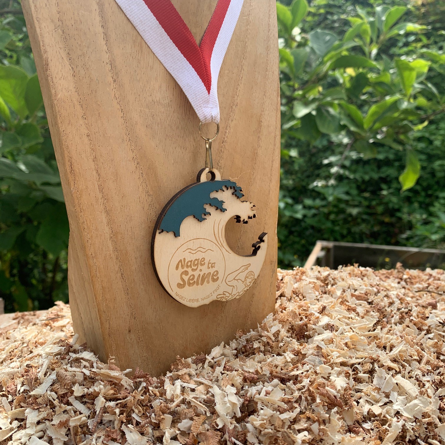 Nous pouvons ajouter, à la main, sur vos médailles des éléments de couleurs en bois peint. (Peinture biosourcée*)