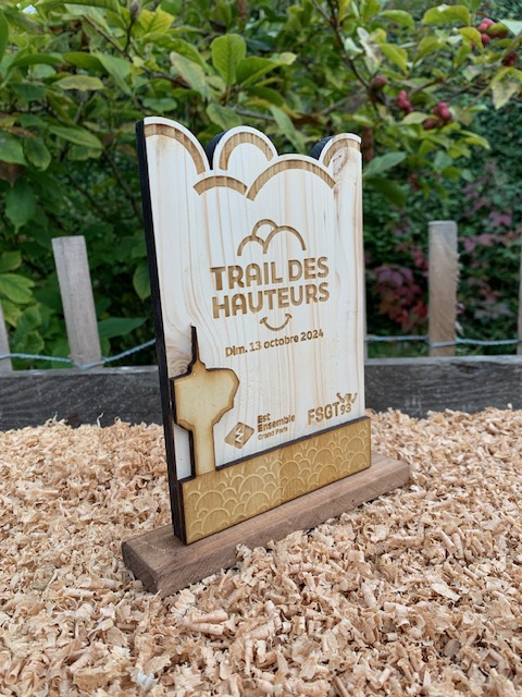 Pour accentuer l’effet de relief et l’impact de vos trophées, nous vous proposons d’apposer, à la main, des éléments de couleurs ou en bois massif sur vos récompenses.